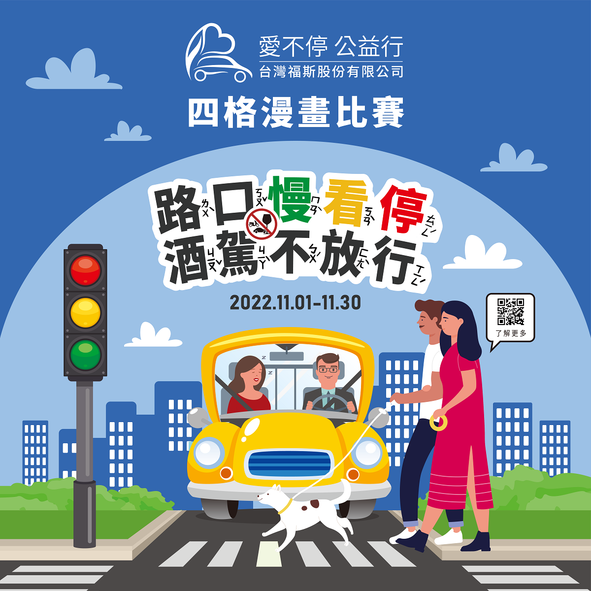 酒駕不放行」為主題,宣告零酒駕公益繪畫比賽於11月正式開跑,開放國小低年級、中年級與高年級三大組別報名參賽,期望透過四格漫畫的趣味性,從小培養孩子們正確的行車安全觀念。