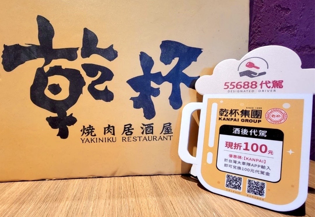 崇尚「邊吃邊喝人生至樂」經營理念的乾杯集團,十分重視飲酒文化,提供美食、美酒讓賓主盡歡,考慮旗下餐飲型態飲酒的客人比例高,為讓客人暢飲無後顧之憂,乾杯集團門市增設台灣大車隊與55688代駕服務,將於用餐結束主動詢問叫計程車、代駕需求,將服務延伸至客人安全返家,並提供最高享330元酒後代駕折扣,讓賓客暢飲無虞、返程無懼。