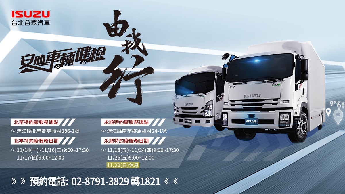 ISUZU馬祖地區車輛安心健診活動,預約電話02-8791-3829 轉1821