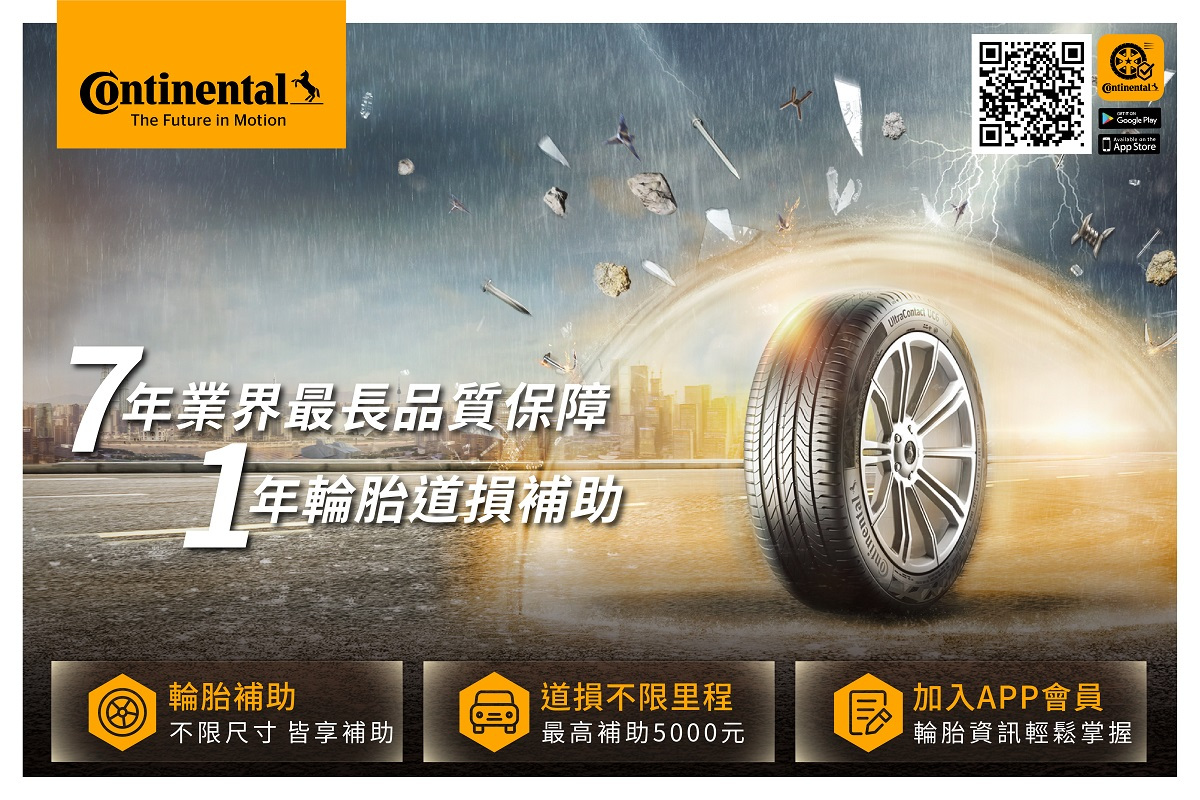 伴隨著「馬牌會員中心TCP APP」的全新上市,保障服務也全面升級!馬牌輪胎推出「一年道損補助計畫」和「業界最長的7年產品保固」2大服務。車主凡自購買日起14天內完成APP註冊,不限尺寸、不限里程,均可享有一年的道損補助保障,最高補助5,000元,輪胎瑕疵擔保保固年限也從過去的5年延長為7年,超越同業水準。