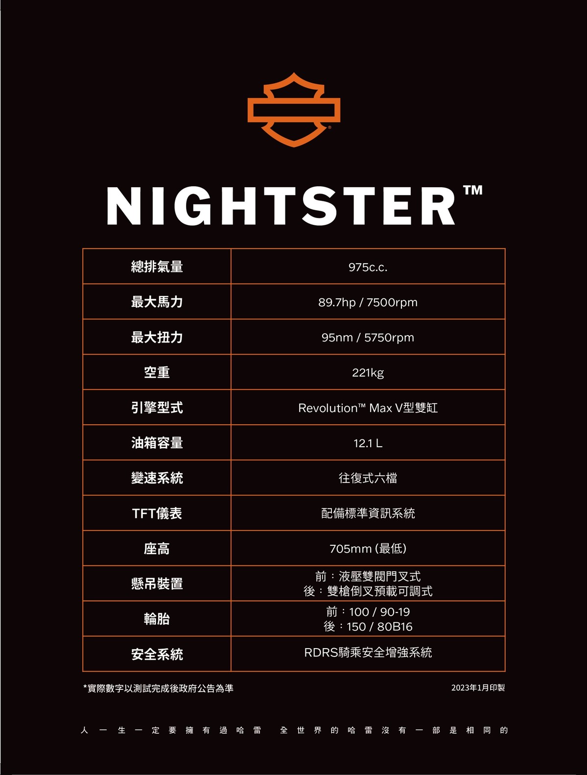 Harley-Davison 台灣總代理太古鼎翰搶先過年期間自2023年1月24日至2023年1月29日,舉辦萬眾矚目的「NightsterTM