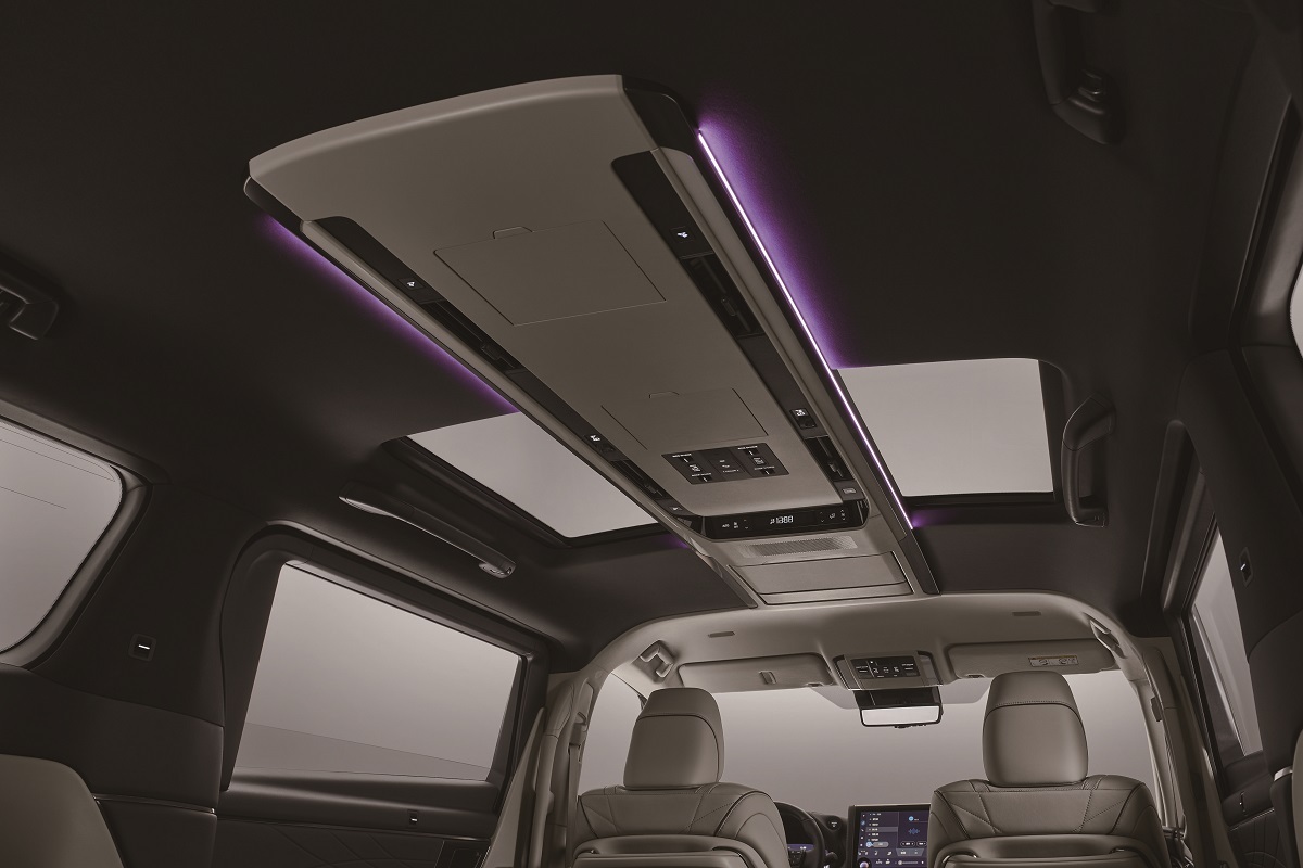 為提供乘客專屬的尊榮體驗,全新ALPHARD升級導入左右獨立式全景天窗,並搭載智慧型四區獨立恆溫空調,配合共64色的高質感環艙氣氛燈,讓乘客可依不同需求營造專屬氛圍。14吋後座影音娛樂系統及全車搭載15具JBL音響,更為乘客打造非凡的視聽娛樂感受。在駕駛中控台設計上,ALPHARD採用12.3吋全彩數位儀錶,多達12種呈現風格使駕駛者隨心切換,加上14吋觸控式主機、HUD抬頭顯示器及線傳式電子排檔,提升整體駕駛艙科技感,移動之間皆可從容駕馭。