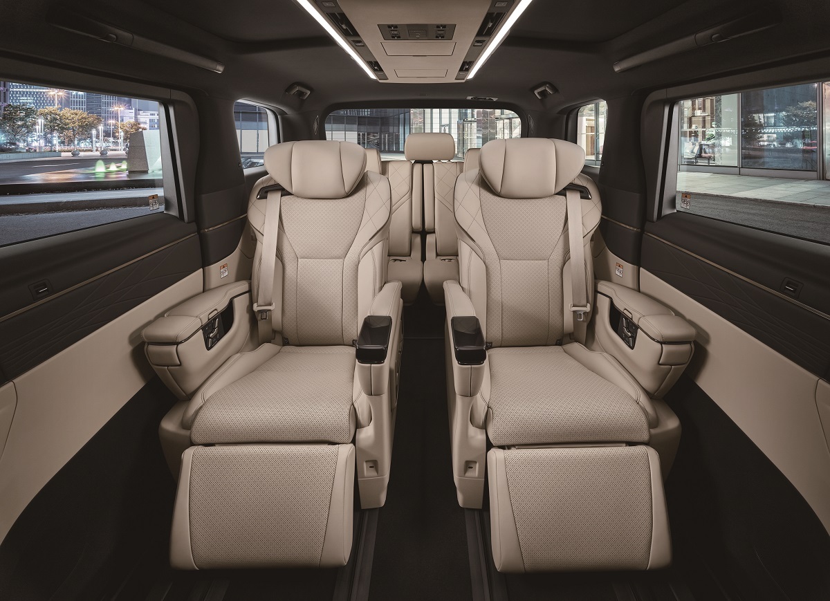 TOYOTA ALPHARD 車室以私人專機理念設計,提供更為頂級的乘坐體驗。ALPHARD全車採用高級皮質和頂尖工藝,第二排座椅新增中央走道,使第三排乘客在進出上更為輕鬆便利,第二排座椅採用電動超長座椅滑軌設計及VIP級的Ottoman腳靠,並同時具備電動調整、加熱、通風等多項功能。除此以外,後座所提供的無線控制面板更讓乘客在享受媲美頭等艙般乘坐感的同時,也能一手輕鬆調整旅程中的各項貼心設定。
