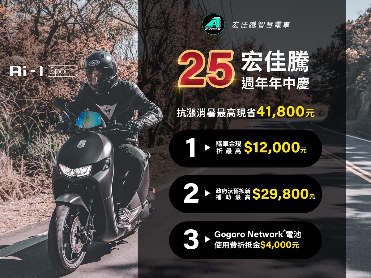宏佳騰25週年年中慶,火熱開跑!一向以消費者為優先考量的宏佳騰貼心推出油電夏日抗漲消暑大作戰,集結品牌旗下熱銷產品,推出超狂購車優惠,為消費者提供最多元的選擇。年中慶活動期間,智慧電車系列購車最高省$41,800元、揪Ai玩樂-學生專屬購車專案最低5.8折,加碼再送品牌精品;油車系列New CO-IN、Dory、Gather 125最低$63,500元就能騎回家;不論是現金購車折扣、刷卡/貸款分期0利率,還是加碼好禮,全都讓你自由選,敬邀消費者把握機會購車,多重優惠只在宏佳騰,一起歡喜省荷包、迎暑夏。