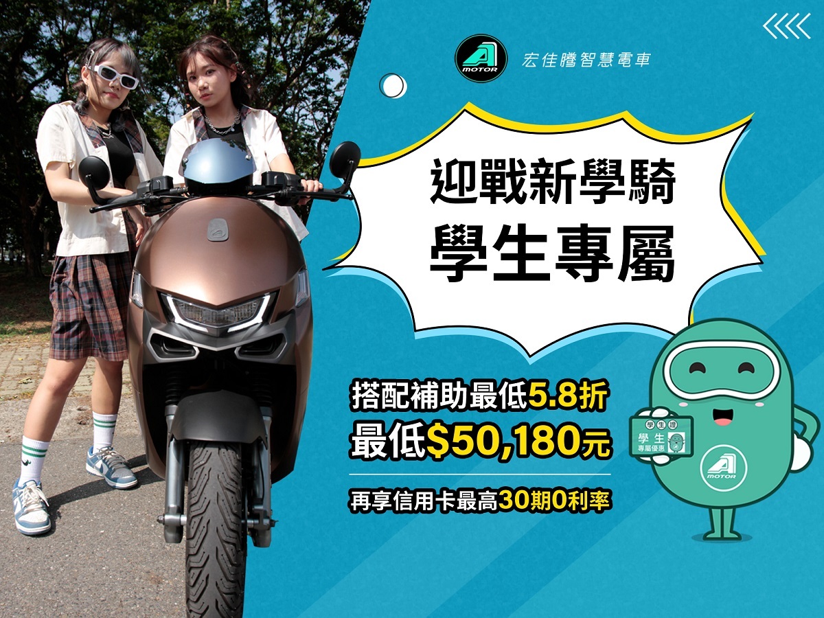 宏佳騰抗漲消暑年中慶優惠波波強襲!深受消費者熱烈迴響的智慧電車25週年購車優惠,優惠最後倒數(7/16止),活動期間凡入主Ai-1 Ultra ABS、Ai-1 Sport、Ai-1 Sport+、Ai-4 Ever等車款,即可享最高$12,000元折扣,搭配政府汰舊換新補助,更可享有$41,800元的最高優惠。除此之外,專為學生設計、最實惠且兼具性能的「揪Ai玩樂」方案持續施辦中,於7/16前憑學生證明文件購買Ai-1 Ultra Belt、Ai-1 More、Ai-3 More等指定車型,搭配政府補助,可以最低5.8折激殺價坐擁全新電車,再加碼贈送品牌精品,包括多功能Y型架、輕量化鋁合金腳踏墊、極簡風飾桿等,快把握機會入手酷炫有型的智慧電車,Fun 心玩暑假。