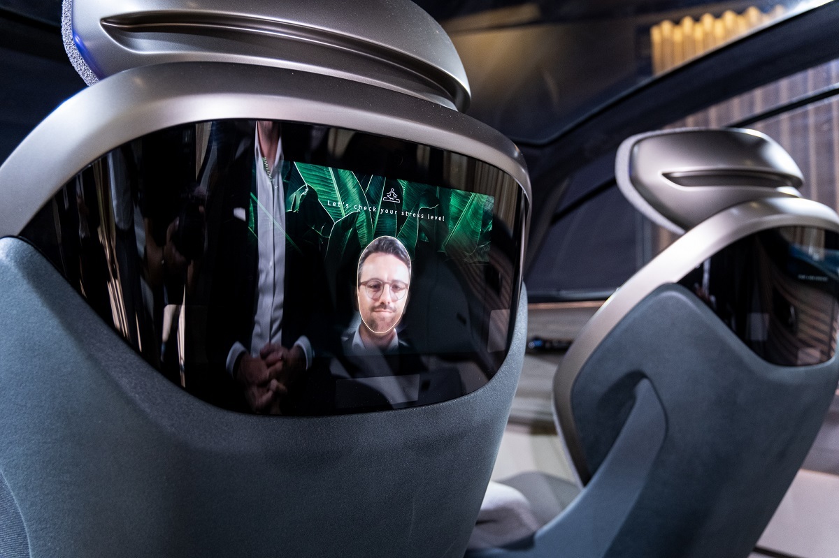 數位科技打造高質感移動體驗 - Audi urbansphere concept 宛如小型的智能劇院車艙,不僅每個座位區配有獨立音響及專屬螢幕,乘客可透過MMI touchless response以語音、手勢及眼球追蹤等模式啟動多項個性化資訊娛樂功能,另雙排座椅中間更設有可升降收折的透明OLED 「cinema screen劇院銀幕」供後排乘客一同觀賞電影、音樂會或加入視訊對談;而受惠數位化科技,其更搭載創新智慧功能,車內設有壓力偵測模式,可借由臉部掃描及語音分析來評估乘客的感受,智慧提供個性化放鬆建議或啟動冥想應用程式等功能。