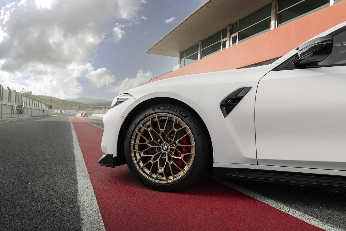 全新BMW M3 CS提供四種外觀車色,其中Frozen Solid White消光白及Signal Green皆為BMW Individual的獨特車色,喜愛低調經典的車主也可以選擇Black Sapphire或Brooklyn Grey metallic。前19後20吋鍛造輪圈具有極出色的強度與耐久性,車主可以自由選擇金色或消光黑輪圈搭配M3 CS專屬的紅色卡鉗或金色卡鉗,標準配備的M碳纖維陶瓷煞車系統提供最直接的煞車反應,除了更為輕量化,其防腐蝕、耐高溫、抗磨損的特性,讓M3 CS無論在一般道路和賽道上都能展現令人屏息的優異表現。