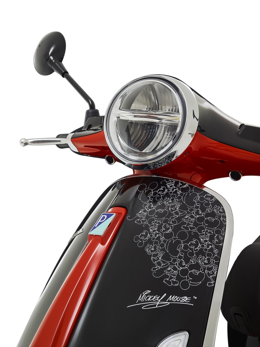 今年時逢迪士尼100週年紀念的特殊時刻,義大利經典速克達品牌Vespa與大人小孩都喜愛的迪士尼,攜手合作推出限量的「迪士尼米老鼠特仕版Vespa」。此車特別選用經典的Vespa Primavera車型,並將外觀設計成家喻戶曉的迪士尼經典角色──米老鼠形象,展現出生動、俏皮、且一眼即可識別的活潑造型,絕對能夠將騎士的獨特個性、風格與故事全然展現。