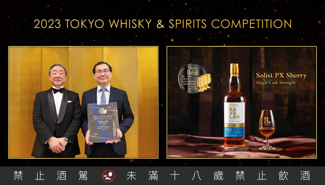 金車噶瑪蘭再傳捷報!於日本TWSC東京國際威士忌與烈酒競賽(Tokyo Whisky & Spirits Competition)決賽中以「經典獨奏 PX雪莉桶威士忌原酒」拿下「2023 最佳單一麥芽威士忌」 (Best of