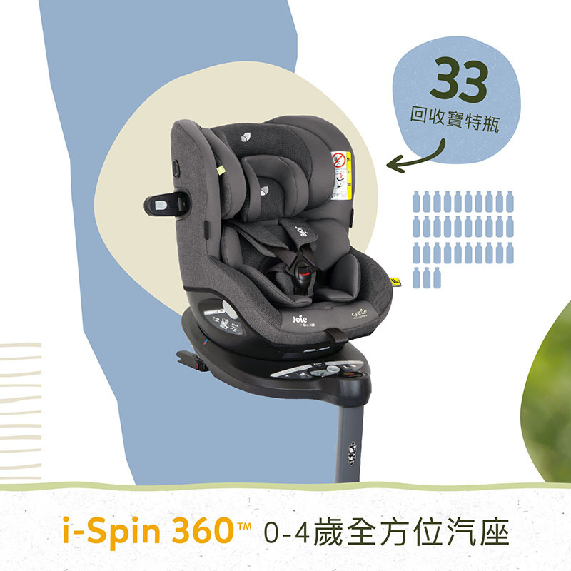 Joie【Cycle collection再生布料系列】目前台灣引進包含i-Sung™2嬰兒提籃汽座、i-Spin 360™ 0-4歲旋轉型汽座、mytrax™ pro 二合一推車,共3項商品,各個都是萬中選一的父母心頭好!i-Sung™2嬰兒提籃與i-Spin 360™ 0-4歲旋轉型汽座皆通過歐洲最新法規R129/03,以i-Size規格打造,並獲得德國ADAC四星好評,是兼具環保價值與高安全性的作品。耐磨避震的mytrax™ pro 推車,單手即可收合,軟件布料使用高達94個回收寶特瓶。所有產品的細節功能,都是為了讓父母能夠更輕鬆、喜悅地育兒所打造。現在就跟Joie一起,用綠色護航你的美好育兒生活,讓育兒變得更環保,讓環保變得更簡單吧!