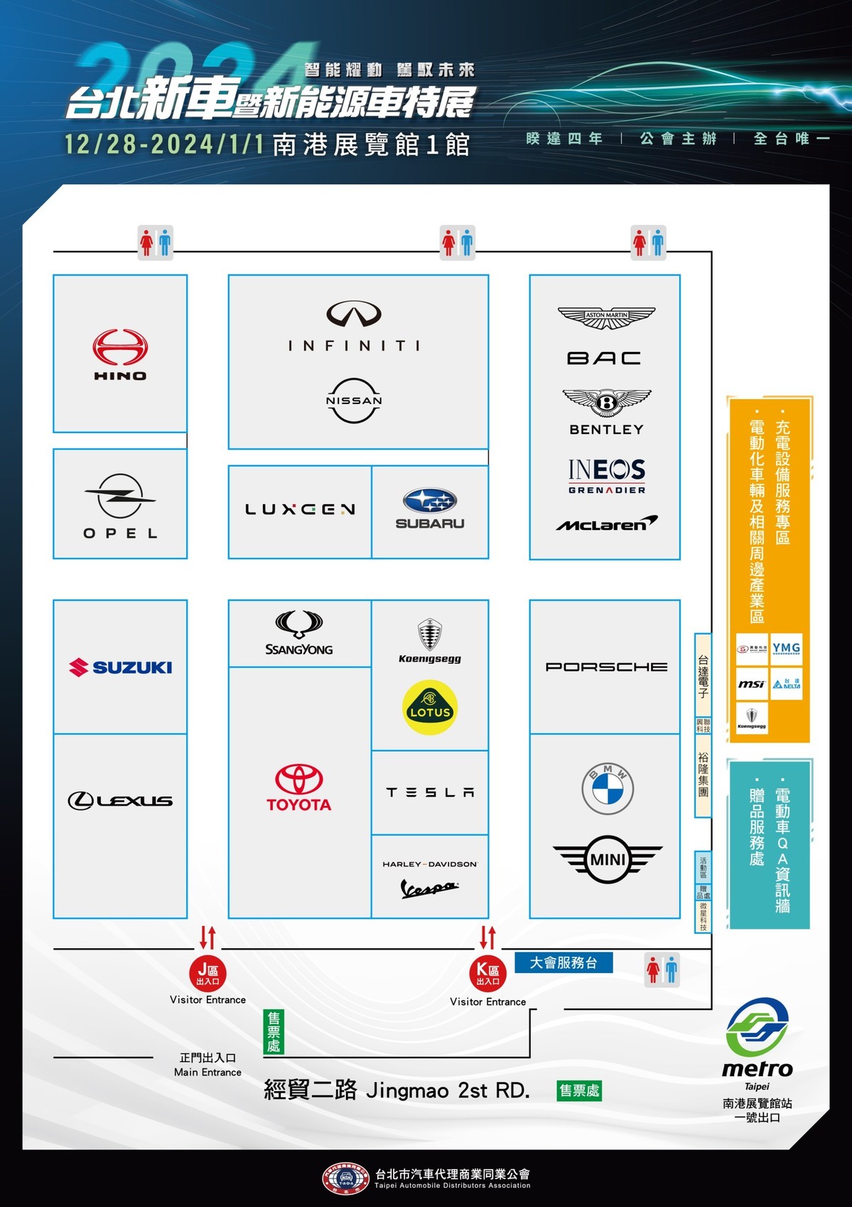 睽違四年,榮耀回歸!本次邀請海內外國際知名品牌攜手同台,國籍包含:台灣、日本、韓國、美國、德國、英國、瑞典、義大利…等,匯聚眾多品牌參與車壇年度風雲盛事,包含:Aston Martin、BENTLEY、BMW、HARLEY-DAVIDSON、HINO、INEOS Grenadier、INFINITI、LEXUS、LOTUS、LUXGEN、Lamborghini、McLaren、MINI、NISSAN、OPEL、PORSCHE、SSANGYONG、SUBARU、SUZUKI、TESLA、TOYOTA、Vespa、台達電子、微星科技、興聯科技、裕隆集團移動服務事業群…等,展場規模達千格展位,實為疫後規模最大的台北新車大展!