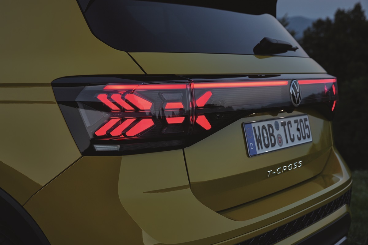 The new T-Cross 繼預售車型 230 TSI Tech 和 230 TSI Style Design 後,驚喜揭曉 230 TSI Life 車型,完整全車系編成,同時推出新車色淨霧藍和日耀黃,彰顯獨一無二的清新風采,外觀承襲一貫亮眼潮流風格,車頭下方搭配黑色下氣壩,邊框綴有銀色鍍鉻飾條,兩側妝點斜偏菱形 LED 獨立式日間行車燈,打造時尚運動外型;230 TSI Tech 以上車型,擁有黑色格柵式水箱護罩連貫式 LED 定位燈,更首度配置 IQ.LIGHT 智慧燈組:LED Matrix 矩陣式頭燈,含全天候照明燈(附角落照明功能),視覺迷人又大幅提升安全性,車尾有 LED 3D 視覺貫穿式尾燈(附動態轉向指示燈),無論是煞車、轉向,或倒車,燈型皆會隨之變換,獨特且方便後方駕駛識別;230 TSI Style Design 車型則享 Style Design 專屬套件,包含 18 吋 Koeln 鋁合金輪圈、Style Design 專屬黑色後視鏡罩、Style Design 專屬後方深色隱私玻璃,展現個人獨到品味。