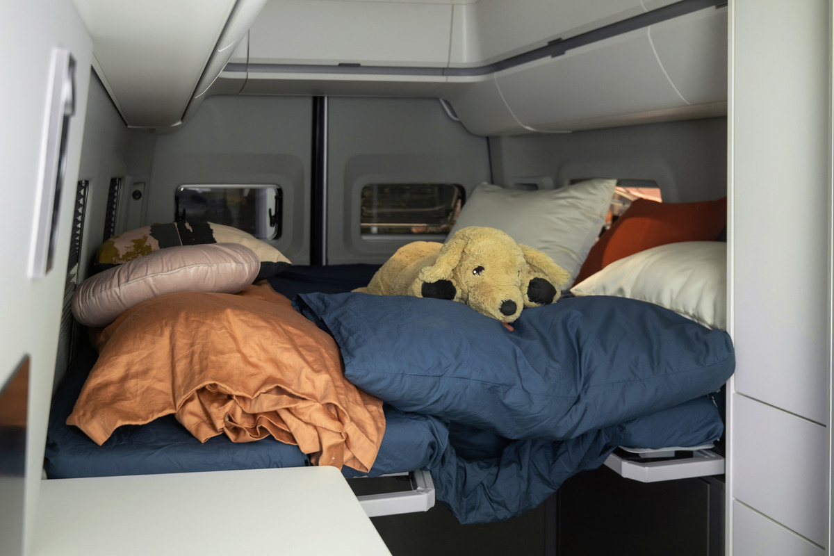 四、舒適隱密的「寢室區」:擁有媲美飯店的蝶型彈簧加厚軟膠床,其左右側臥床長度分別為2000 mm及1900 mm,及全寛1670 mm,另搭配高強度支撐碟型彈簧設計,能有強化床墊的支撐性及舒適性;車艙內並多處設置收納置物空間,臥床區上方也規劃11格行李櫃,同時在臥床區下方中央則配置800公升的收納空間,可完善收納隨身物品或是大型寢具。此外,車艙內設置5組歐規插座、3組共6個USB插座,提供乘員便利快速充電。