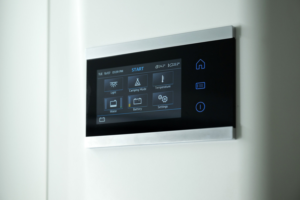 一、寬敞舒適的「起居室區」:Grand California 680不僅擁有6,836mm x 2,040mm x 2,839mm (長寬高)的超大車身尺寸,更結合1,970mm挑高車室高度,可容納更多車宿所需要的實用配備,並標配兩側各634mm的「寬敞右側滑門含防蚊紗簾」,可雙向滑動式設計,兼顧車宿實用的防蚊及通風功能。而「中央多功能觸控面板」具備水箱、電池、燈光、駐車暖氣等設定功能,以及控制側滑門電動伸縮輔助階梯保持向外延伸,不會因側滑門關閉而收起的露營模式。