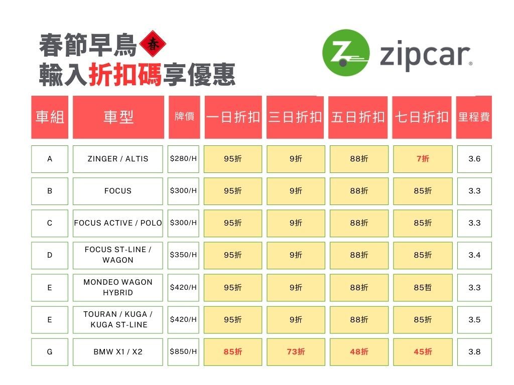 搭配春節優惠碼,根據不同車組與時段靈活選擇,讓行程更輕鬆經濟,詳情請洽Zipcar春節優惠頁 https://lihi1.me/F4puo 。