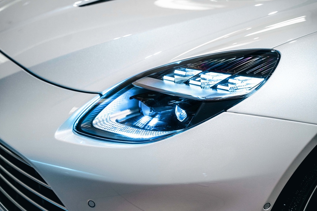 全新矩陣式 LED 頭燈營造 Aston Martin 的全新識別特徵,車燈細節處精心雕琢,並在大燈內刻有