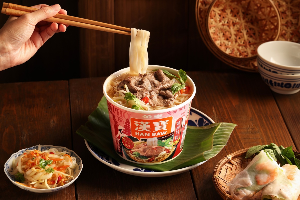 根據統計,東南亞族群已成台灣第四大族群,其中越籍人口約占30%,達52.5萬人,推估一年可創造$311億商機。同時,國人至越南旅遊人數也突破51 萬人次,越式文化愈發普及。看中此一風潮與現況,金車漢寶以越南經典且台人接受度最高的美食代表為靈感,推出越式河粉,開發過程中,特別在台與跨海募集共157位在台越籍與越南當地人士參與試吃調研,打造出連當地人都讚不絕口的家鄉味,期待此次推出也可滿足台灣消費者對正宗越式風味的渴望。
