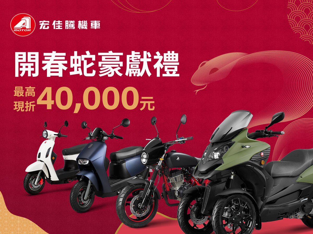 蛇年如意,快樂迎新春,宏佳騰延續購車優惠,全力提供最超值的出行好夥伴。燃油機車最高現折4萬元、電動機車最高現折1萬5千元,另享無卡分期低利率或零利率方案,歡迎全台消費者入手新好騎,上下班保持好心情,一掃收假症候群。
