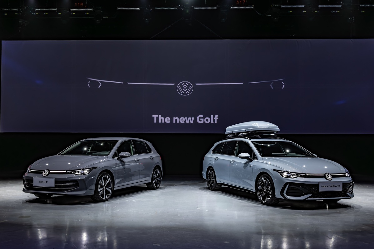 台灣福斯汽車總裁Steffen Knapp指出:「歷經八代演繹,The Golf傳承標誌性的寬厚C柱與簡潔的線條,將跨世代回憶精隨保留並且不斷雕琢細節,刻畫出更現代、匠心獨運又具跑格樣貌的姿態」,The new Golf/Variant換上新前、後保險桿,向內C字勾起的線條營造出集中、銳利的效果,衝擊又魄力感十足,280 eTSI Style車型具鍍鉻飾條、280 eTSI R-Line車型為高光澤烤漆,R車型則是專屬運動化保險桿,側邊Air Curtain氣簾設計,達到競技視覺和更最佳空氣動力學效率。全車系除了標配的LED日間行車燈、光感應自動頭燈(含Coming Home和Leaving Home功能),入門280 eTSI Life Premium以上車型即能擁有吸引眾人目光的歐洲首發、台灣初次亮相廠徽光標定位燈,經由LED燈管呈現V、W和圓圈組成的品牌標誌,左右串聯特色水箱護罩連貫式LED定位燈,形成兼具高辨識度和豪華感的視覺亮點,GTI及R車型於水箱護罩上各綴專屬橫貫式紅色、藍色飾條,畫龍點睛增添運動氣息,而車頭兩側本次於280 eTSI Style以上車型新增標配品牌引以為傲的燈光科技IQ.LIGHT:LED Matrix矩陣式頭燈,不僅有流水造型前/後動態轉向指示燈,其新式高效遠光燈夜晚最遠照射距離可達500公尺,大幅超越傳統頭燈。