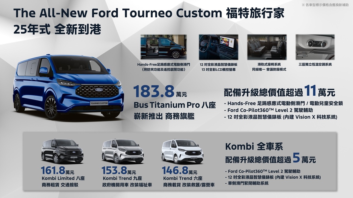 The All-New Ford Tourneo Custom福特旅行家全新25年式建議售價: