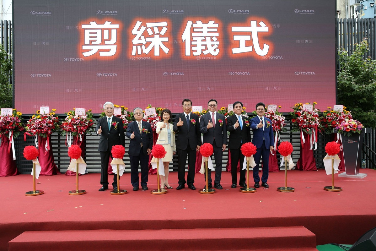 李俊仁建築師(左一) 、國都汽車浦野真佐彥副董事長(左二)、和裕投資林麗華董事長(左三)、國都汽車黃南光董事長(中)、和泰汽車蘇純興總經理(右三)、和泰汽車長沼一生執行副總(右二)、國都汽車黃明顯總經理(右一)。