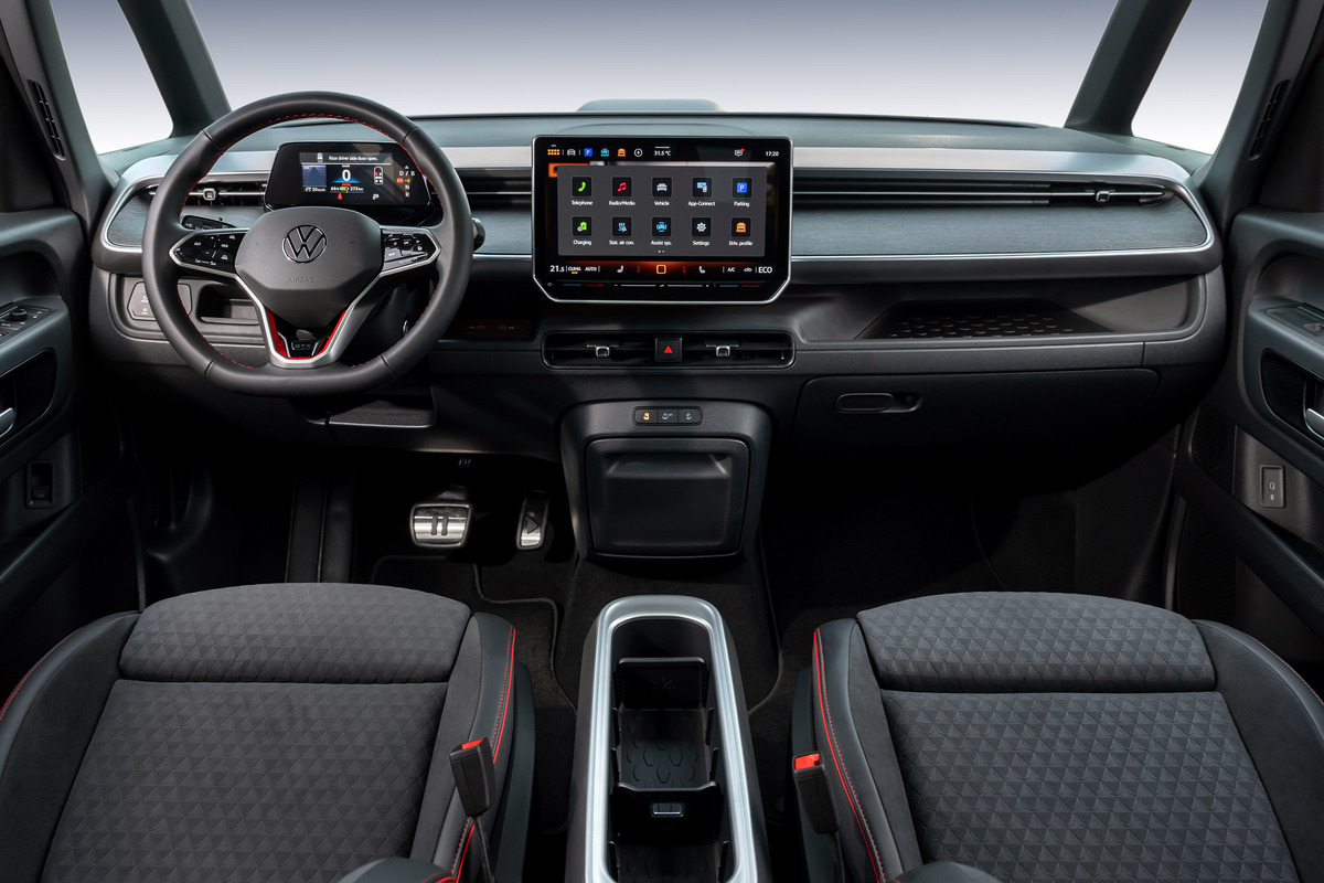 全新 ID. Buzz GTX 車室內裝鋪陳同樣朝運動化升級,包括 GTX 專屬性能風格內裝及座椅 ( GTX Premium 專屬 ArtVelours 絲絨 / 皮質混搭座椅)、儀表飾板,營造出挑動視覺感官的性能風格和駕馭氛圍,創新智慧舒適配備同樣一應俱全,包含Easy Open/Close 啟閉功能的腳踢感應式雙電動滑門及尾門,超大開口設計方便乘客進出車輛及拿取後行李箱大型物品。 3,239mm 超長軸距的優勢下,第二排與第三排乘客均擁有相同的乘坐舒適性;而通過德國AGR脊椎健康聯盟組織認證、具備按摩功能的雙前座 ergoComfort座椅也為前座乘客帶來極佳乘坐體驗。其他便利配備如乘客艙電動滑窗、Air Care Climatronic 三區電子恆溫空調系統均是 ID. Buzz GTX 專屬標配,全車內外均採用智慧創新燈光設計,包含 IQ.Light 智慧燈組(含LED Matrix矩陣式頭燈跟LED序列式動態尾燈)、ID.Light 智能感應互動光條和環艙氛圍燈光系統,提供車室座艙效果十足的燈光演繹。