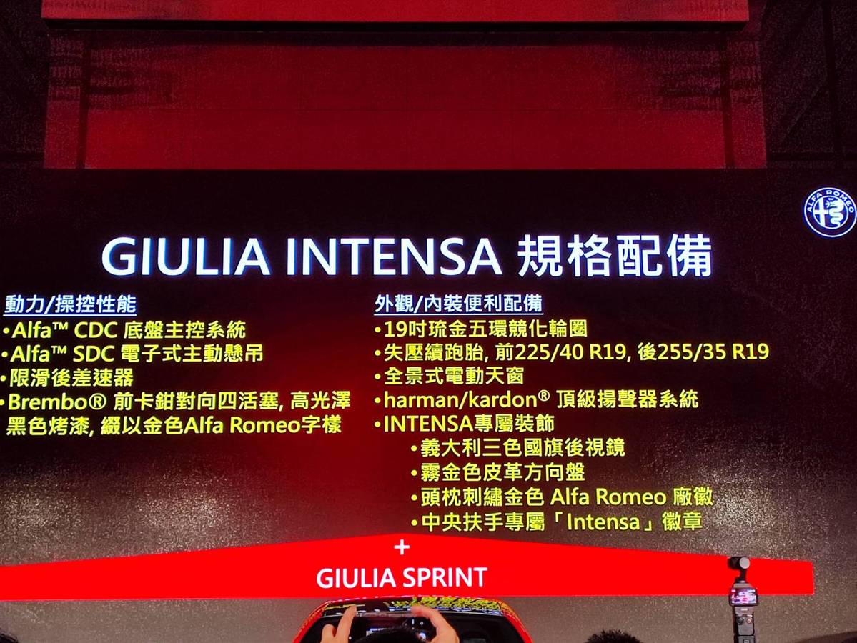 Sprint 與 Intensa 的雙編成導入,讓 Giulia 與 Stelvio 的產品陣線在台灣更加完整而鮮明。Sprint 以純粹的義式運動精神為核心,展現俐落設計與極致操控本質,專為渴望體驗 Alfa Romeo 原汁原味駕馭快感的車迷而生。Intensa 則以獨有的外觀語彙、精緻內裝鋪陳與高規格配備升級,彰顯豪華格調與獨特身份感,成為菁英車主的專屬之選。
