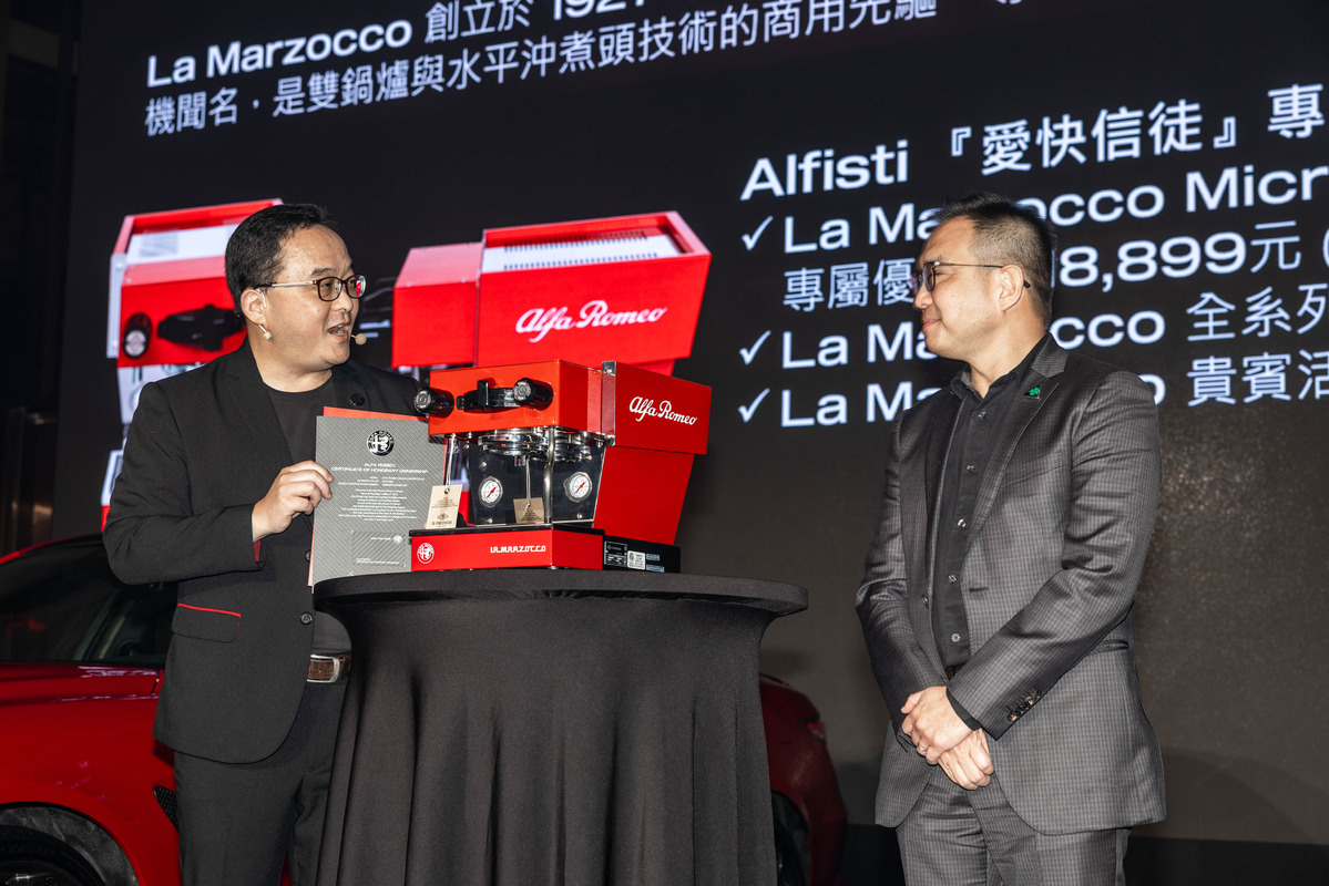 Alfa Romeo 品牌發表會現場不僅凝聚百年賽道傳承與義式美學精髓,更以前衛設計與純粹駕馭精神,再度彰顯義式性能品牌的熱血信仰。此次限量導入的運動轎跑 Giulia、性能休旅 Stelvio 與性能旗艦 Giulia Quadrifoglio,更是將這份榮耀推向高峰。台灣市場導入數量有限,僅開放少數幸運車主入主,不僅代表尊榮身份,更象徵與 Alfa Romeo 共同見證品牌重返的歷史時刻。同時,首批車主更將獲得『Alfisti 愛快信徒專屬禮遇計畫』的尊榮資格,享有 Alfa Romeo 專屬車輛收藏證書、Alfisti 愛快信徒專屬卡片 / 交車禮盒、7 年 20 萬公里原廠延長保固、Alfa Romeo 未來品牌活動優先出席名額以及義大利頂級咖啡機品牌 La Marzocco 專屬禮遇,成為 Alfa Romeo 在台灣全新篇章的見證者。