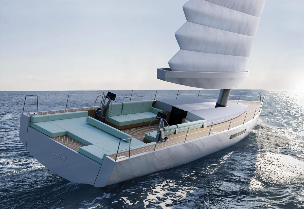 此外,AQUA 也將搭載輔助電動推進系統,方便在靠港或無風的情況下航行。NOVEM 在設計上也加入水力發電機,讓遊艇具備自給能源的能力,展現極簡與環保的理念。