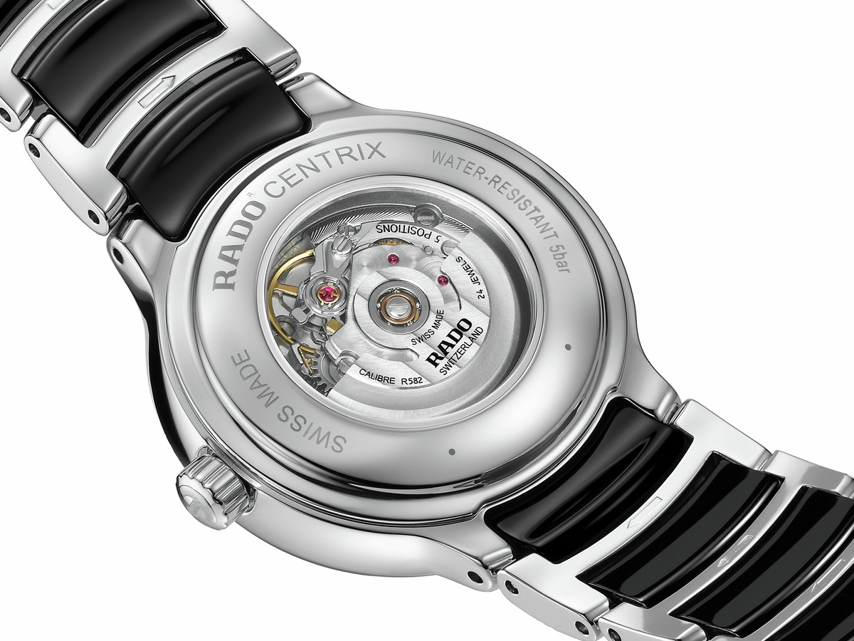 Rado R582 型自動機械機芯,24 顆寶石,3 指針款式,日期顯示位於 6 點鐘位置,動力儲存長達 48 小時,配備 Nivachron™ 防磁游絲;通過 5 個方位的精密調校,優於標準測試要求,確保走時穩定精準。