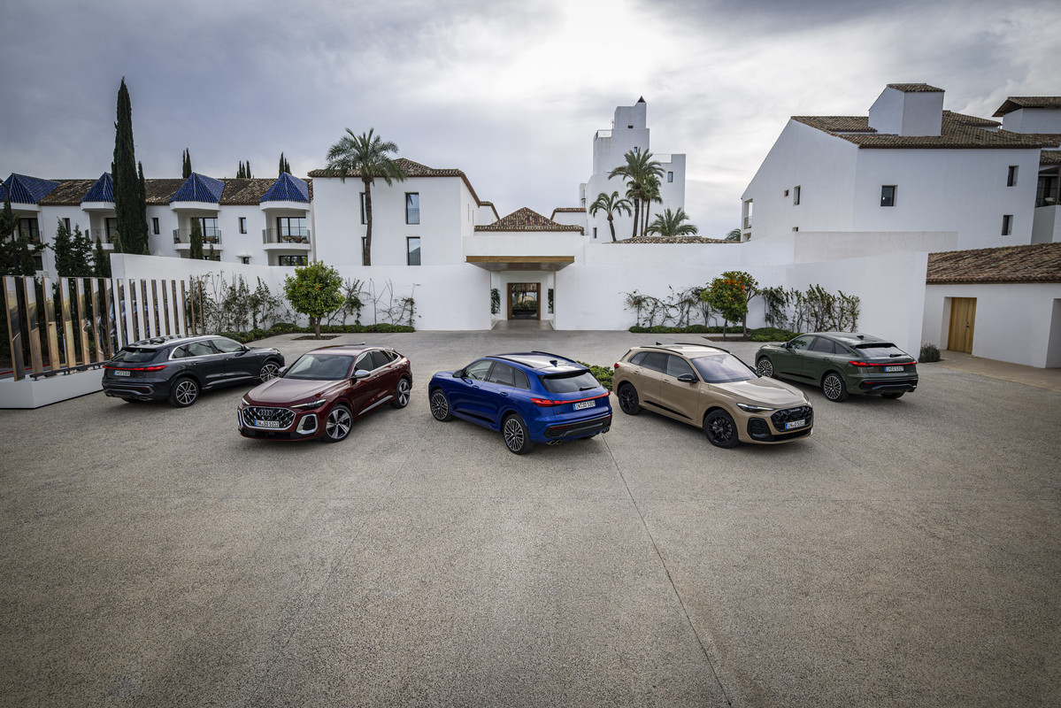 ●SQ5 | SQ5 Sportback : 作為性能旗艦,搭載 3.0 V6 TFSI 引擎,具備 367 hp 與 550 Nm 強勁動力輸出,搭配 quattro with ultra technology 智慧型四輪傳動系統與氣壓懸吊,0–100 km/h 加速僅需 4.5 秒,極速高達 250 km/h。透過低重心設計、精準轉向回饋與進階底盤調校,實現極致駕馭快感,是四環性能美學與科技工程的結晶,展現頂尖性能與舒適兼具的旗艦定位。