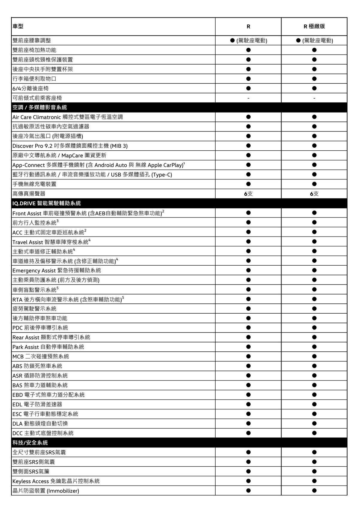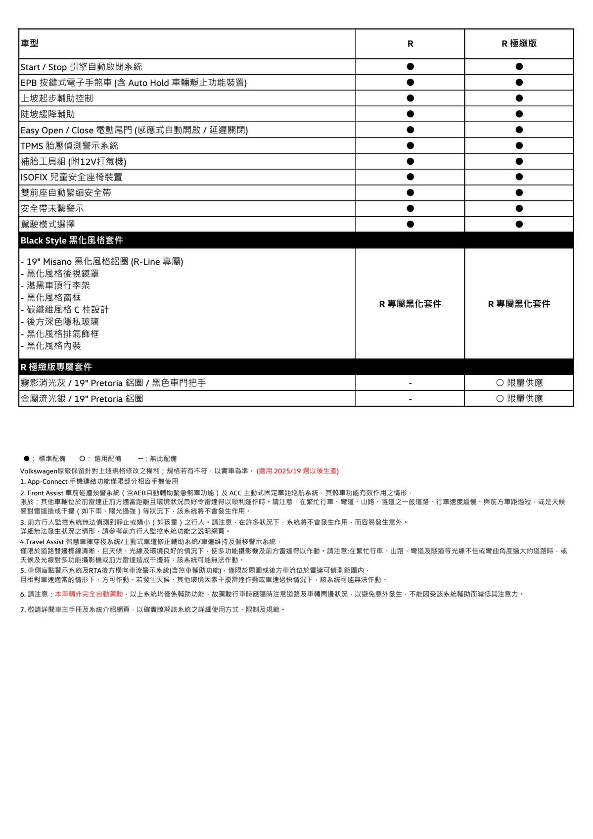 作為令人安心的可靠後盾,The new T-Roc R極緻版具有豐富的主被動安全科技和完善的IQ.DRIVE 智能駕駛輔助系統:Travel Assist 智慧車陣穿梭系統整合全速域 ACC 主動式固定車距巡航系統、車道維持及偏移警示系統(含修正輔助功能)和主動式車道修正輔助系統,有效減輕駕駛負擔,配合主動乘員防護系統(前方及後方偵測)、Front Assist 車前碰撞預警系統(含AEB自動輔助緊急煞車功能)、車側盲點警示系統、RTA後方橫向車流警示系統(含煞車輔助功能)、MCB二次碰撞預煞系統與6具SRS安全輔助氣囊,全方位守護每次無憂的平安出行。
