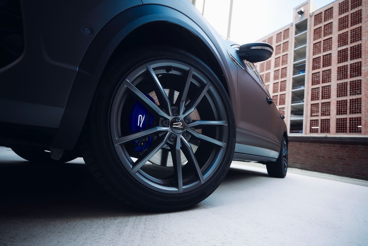 ●台灣福斯汽車推出The new T-Roc R極緻版,首度導入Volkswagen R部門獨家調製特殊新色—霧影消光灰搭配全新19吋Pretoria鋁合金輪圈,沉靜而氣宇軒昂,以凌厲狂傲的王者之姿撼動全場。