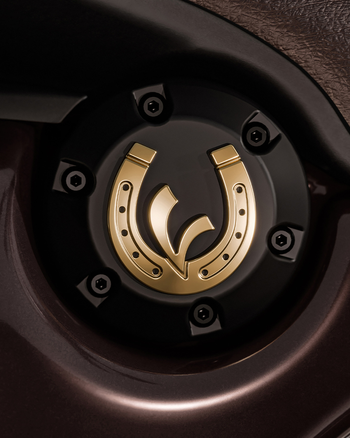 這款限量的特仕版採用獨特的「月桂棕」(Bay color),這深邃的棕色調令人聯想起馬匹深邃且富有光澤的毛色。鋼製車身透過霧面與亮面交錯的細節處理,並點綴精緻的金色飾面,例如座墊下方隱藏著一處珍貴細節:一枚金色的馬蹄鐵,環繞著 Vespa 的「V」字標誌。在手把上,天然皮革與承襲經典的工藝相遇:細緻的菱格紋車縫線由職人精湛手藝勾勒出。這一微小卻足以定義風格的關鍵細節,為騎乘體驗注入最純粹的質感。後視鏡與手把設計相輔相成,在風格與傳統之間取得完美平衡,成就這款車最鮮明且獨特的視覺美學。